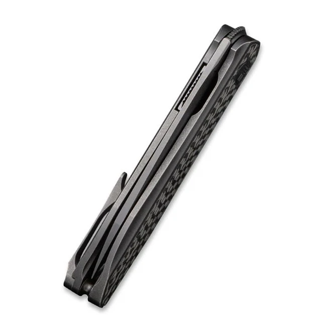 WE Knife Kitefin Frame Lock Knife Shredded CF + Gray Ti Handle Plain S35VN Blade 2001B