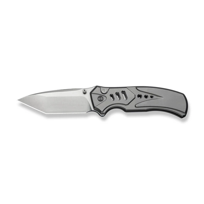 WE Acuminal Folding Knife Polished Gray Titanium Handle Damasteel Plain Edge WE23070-DS1