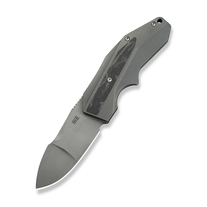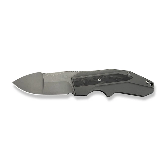 WE Button Lock Zentron Folding Knife Gray Titanium Handle M390 Plain Edge Satin Finish WE24094-2